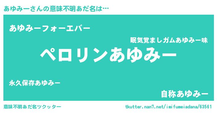 | ファンタジー風あだ名 | 『アユフェル』『エターナルアユミーー』 |