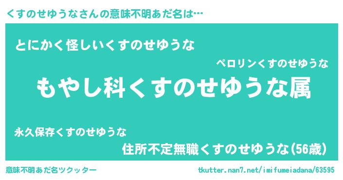 | 男性向けラノベタイトル風あだ名 | 『転生したらくすのせゆうなだった件』 |