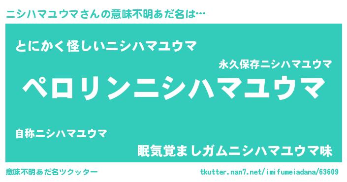 | 男性向けラノベタイトル風あだ名 | 『ニシハマユウマアートオンライン』 |