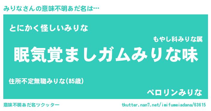| 欧米人風あだ名 | 『ダニエルみりな』『ウサインみりな』 |