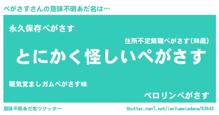 | 男性向けラノベタイトル風あだ名 | 『ぺがさすの嫁は女の子じゃないと思った?』 |