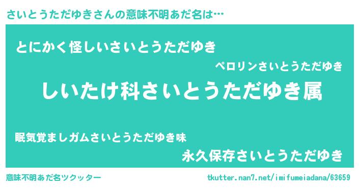| 男性向けラノベタイトル風あだ名 | 『サイトウタダユキスレイヤー』 |