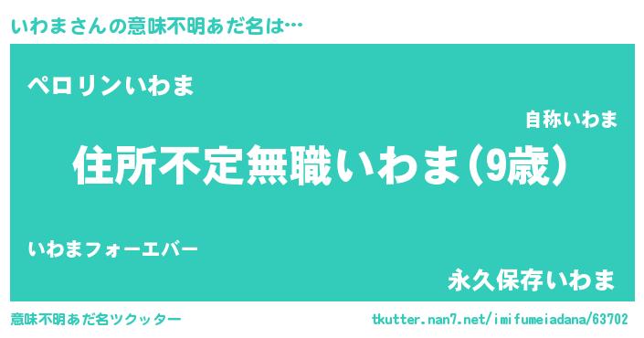 | 男性向けラノベタイトル風あだ名 | 『魔弾の王といわま』 |