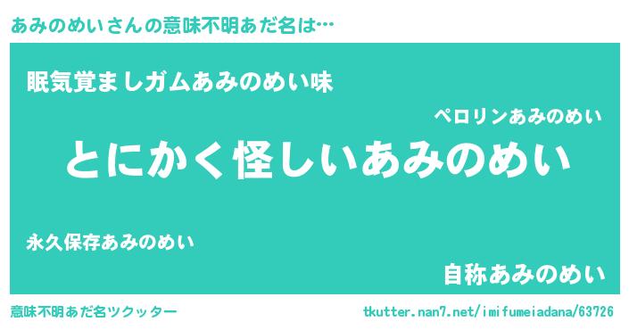 | 欧米人風あだ名 | 『ウサインあみのめい』 |