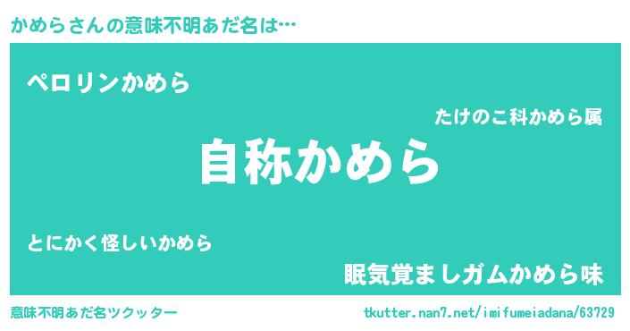 | 料理風あだ名 | 『ヘルシー!かめらのピリ辛酒蒸し!』 |