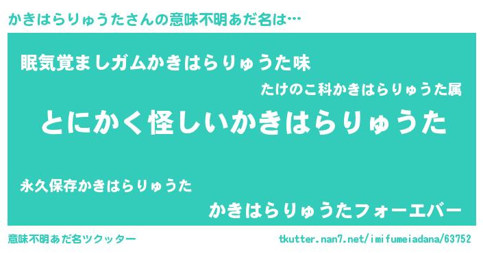 | 男性向けラノベタイトル風あだ名 | 『ダンジョンにかきはらりゅうたを求めるのは間違っているだろうか』 |