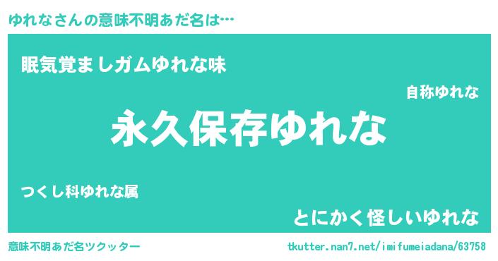 | 男性向けラノベタイトル風あだ名 | 『ゆれなという概念が存在しない退屈な世界 』 |