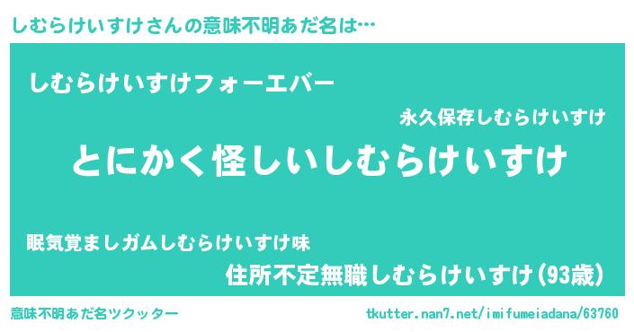 | 女子向けラノベタイトル風あだ名 | 『しむらけいすけは平凡を望む』 |