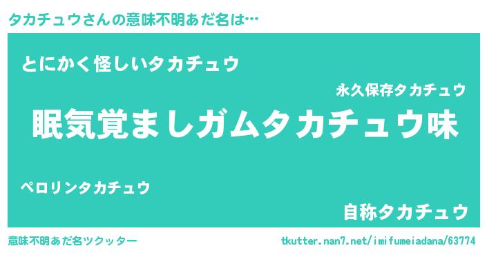 | ポケモン風あだ名 | 『タックウザ』『ヒタカチュウ』 |