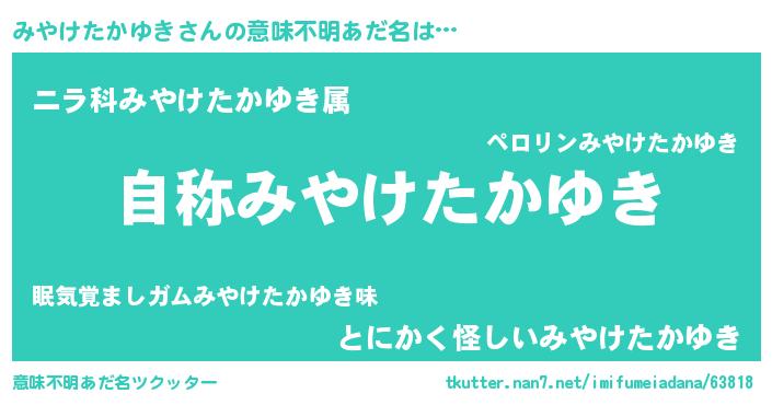 | 欧米人風あだ名 | 『ケンブリッジみやけたかゆき』 |