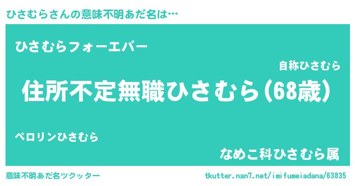 | 男性向けラノベタイトル風あだ名 | 『この素晴らしい世界にひさむらを!』 |