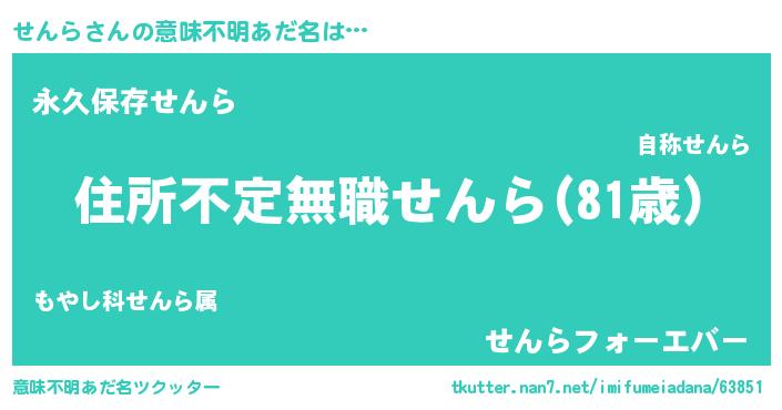 | ヘコむあだ名 | 『せんら(震え声)』『酢こんぶ』 |