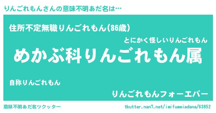 | 欧米人風あだ名 | 『アンジェラ・りんごれもん』 |