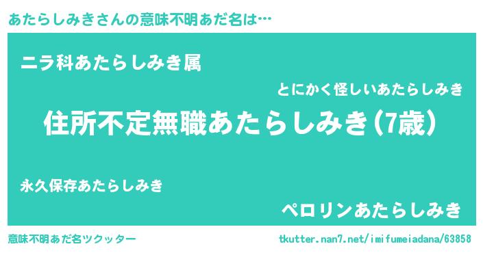 | 女子向けラノベタイトル風あだ名 | 『乙女ゲームの破滅フラグしかない悪役あたらしみきに転生してしまった…』 |