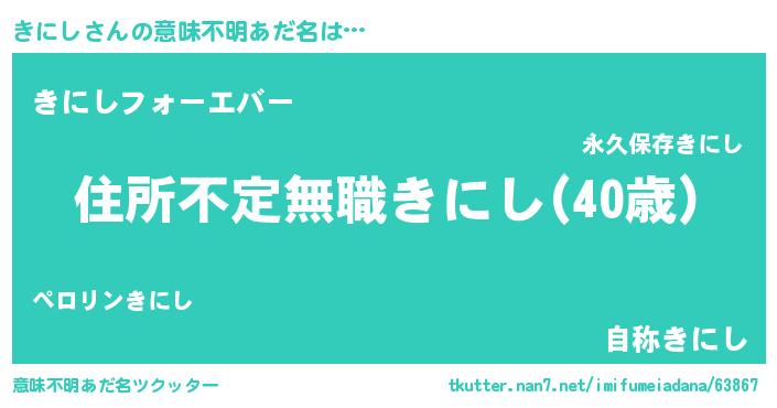 | ヘコむあだ名 | 『なまこ酢』『きにし(笑)』『きにお』 |