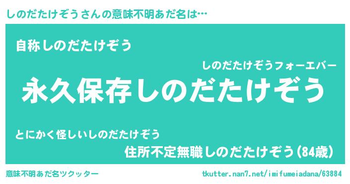 | 男性向けラノベタイトル風あだ名 | 『緋弾のシノダタケゾウ』 |