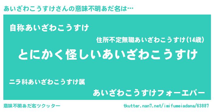 | ポケモン風あだ名 | 『ヒアイザワコウスケ』『アイゴンZ』 |