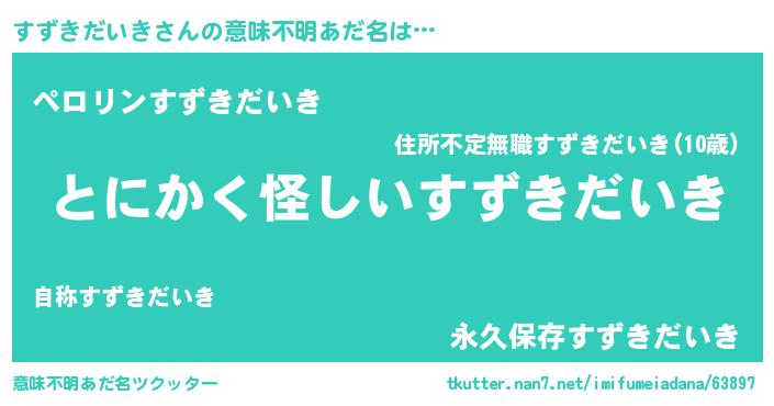 | ポケモン風あだ名 | 『ヒスズキダイキ』『スズチュウ』 |