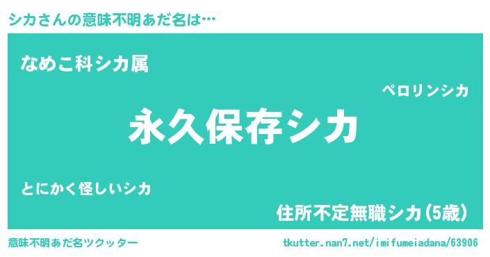 | 男性向けラノベタイトル風あだ名 | 『シカという概念が存在しない退屈な世界 』 |