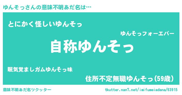 | 男性向けラノベタイトル風あだ名 | 『Re:ゆんそっから始める異世界生活』 |