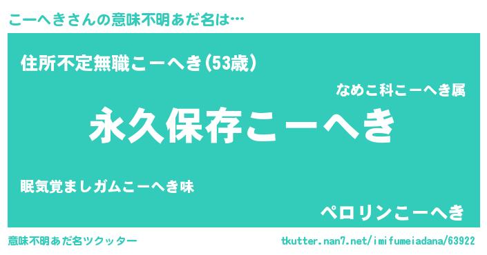 | 胡散臭い通販商品みたいなあだ名 | 『絶対に幸福をもたらす健康食品…その名も「こーへき」』 |