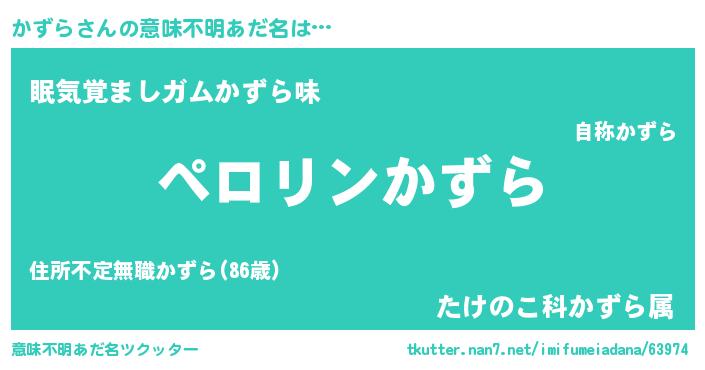 | 男性向けラノベタイトル風あだ名 | 『かずらに滅ぼされるだけの簡単なお仕事です』 |