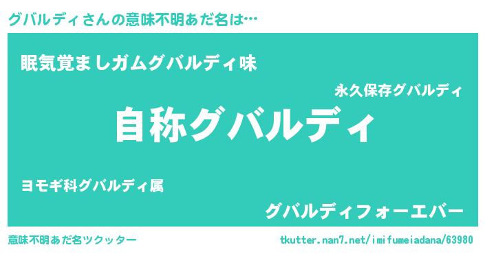 | 恥ずかしいあだ名 | 『グバルディデラックス』『グバっちょ』 |