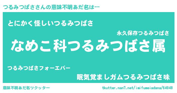 | 男性向けラノベタイトル風あだ名 | 『転生したらつるみつばさだった件』 |