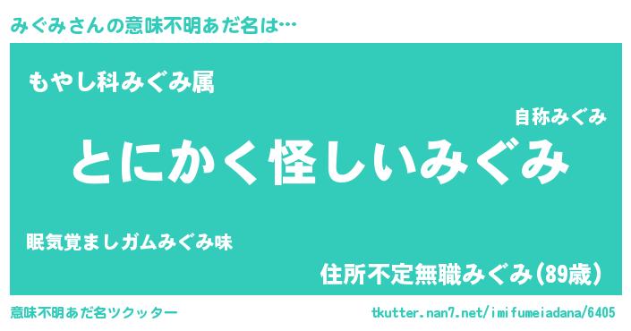 | 男性向けラノベタイトル風あだ名 | 『みぐみの嫁は女の子じゃないと思った?』 |