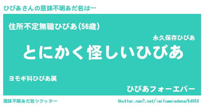 | ポケモン風あだ名 | 『ヒヒビア』『ヒービイ』『ゼニヒビ』 |