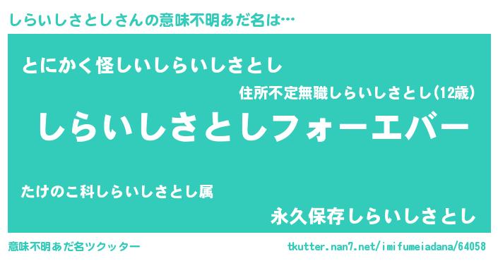 | ファンタジー風あだ名 | 『エターナルシライシサトシー』 |