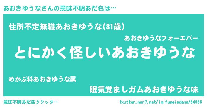 | ポケモン風あだ名 | 『ヒアオキユウナ』『メロアッオ』 |