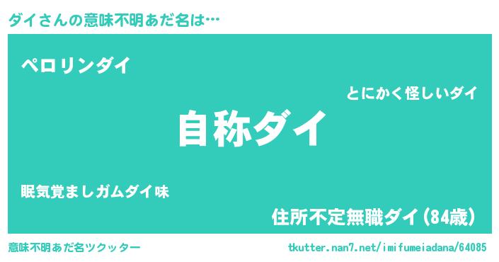 | ヘコむあだ名 | 『ダイっふぃ~』『ダイお』『つくし』 |