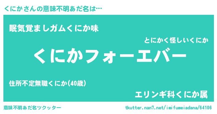 | 欧米人風あだ名 | 『くにか・ステッグマイヤー』 |