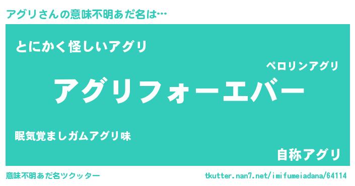 | 女子向けラノベタイトル風あだ名 | 『アグリの雑貨屋さん』『闇のアグリ』 |
