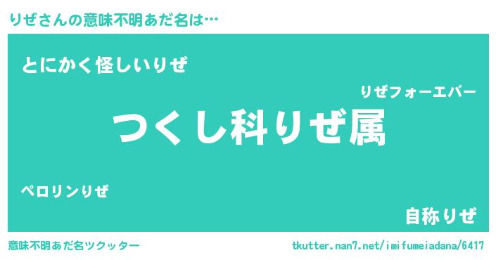 | ヘコむあだ名 | 『りぜっぺ』『つくし』『りぜもー』 |