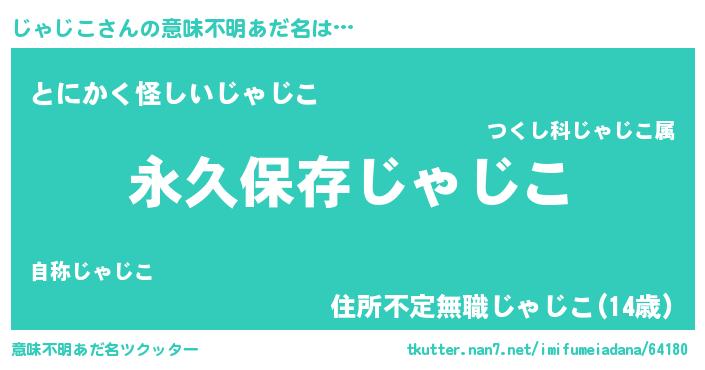 | 男性向けラノベタイトル風あだ名 | 『じゃじこに滅ぼされるだけの簡単なお仕事です』 |