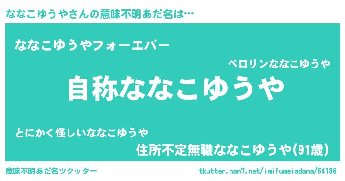 | 欧米人風あだ名 | 『ケンブリッジななこゆうや』 |