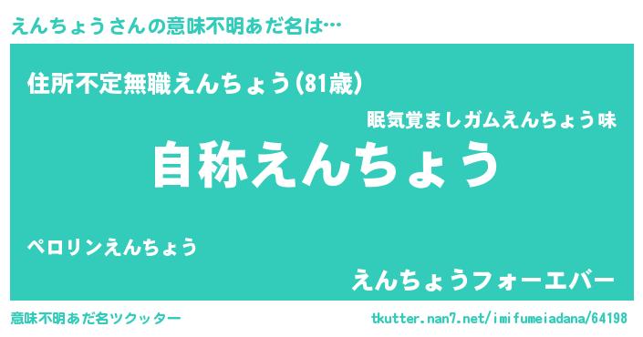 | ヘコむあだ名 | 『酢こんぶ』『えんもー』『えんっぺ』 |