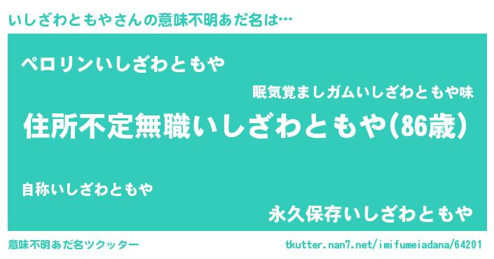 | 男性向けラノベタイトル風あだ名 | 『この素晴らしい世界にいしざわともやを!』 |