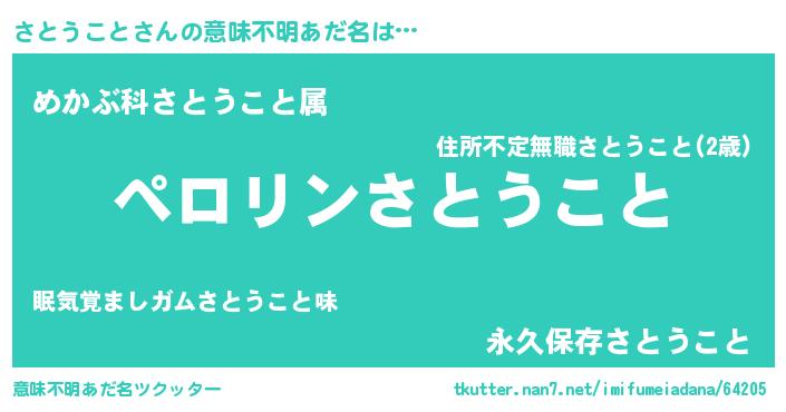 | ヒーロー風カッコイイあだ名 | 『スーパーサトウコト』『ネオサトウコト』 |