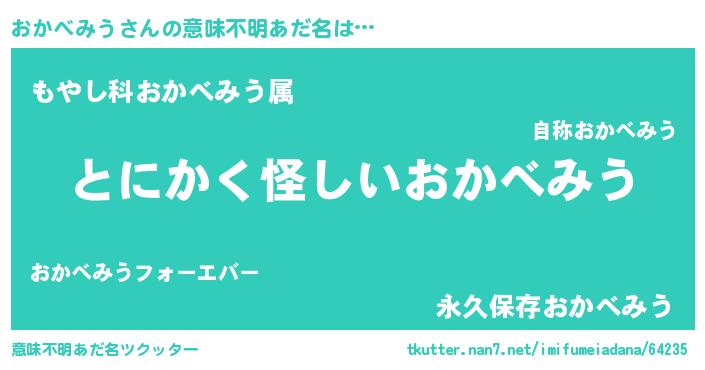 | 女子向けラノベタイトル風あだ名 | 『おかべみうの卵を拾いまして』 |