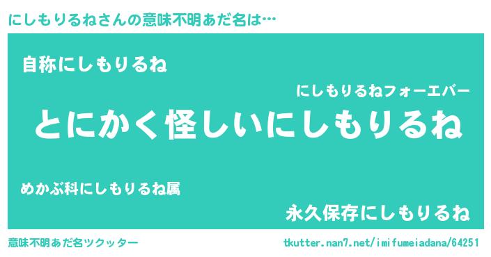 | 料理風あだ名 | 『にしもりるねの豆乳スープ』 |