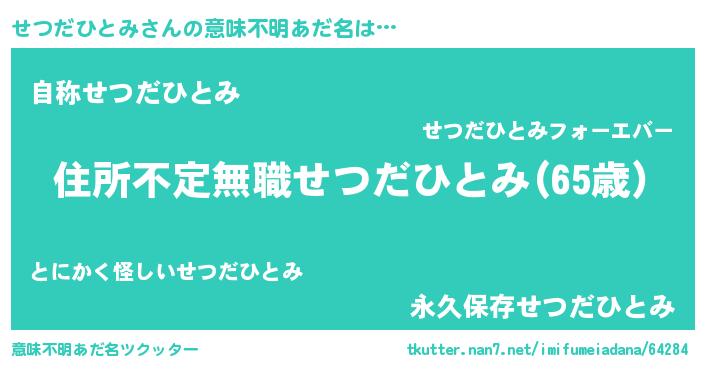 | 男性向けラノベタイトル風あだ名 | 『この素晴らしい世界にせつだひとみを!』 |