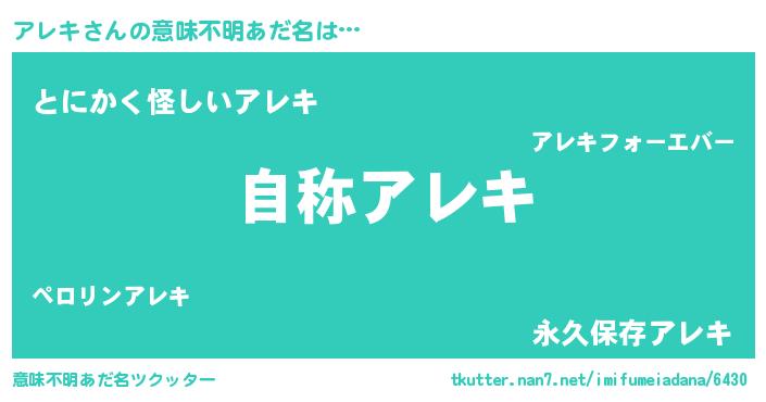 | ヒーロー風カッコイイあだ名 | 『ウルトラ戦士アレキ』『魔戒騎士アレ』 |