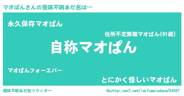 | 男性向けラノベタイトル風あだ名 | 『Re:マオぱんから始める異世界生活』 |