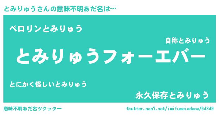 | ファンタジー風あだ名 | 『エターナルトミリュウー』『トミフェル』 |