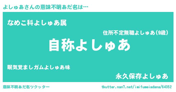 | ヘコむあだ名 | 『よしゅあ(苦笑)』『豆乳』『よしを』 |