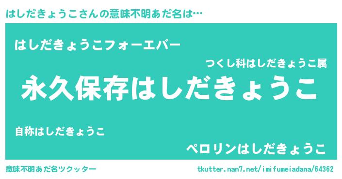 | 伝説のあだ名 | 『古より伝わる勇者はしだきょうこ』 |