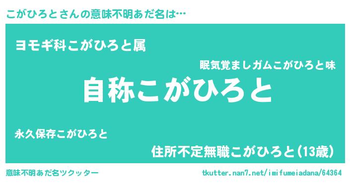 | 男性向けラノベタイトル風あだ名 | 『Re:こがひろとから始める異世界生活』 |